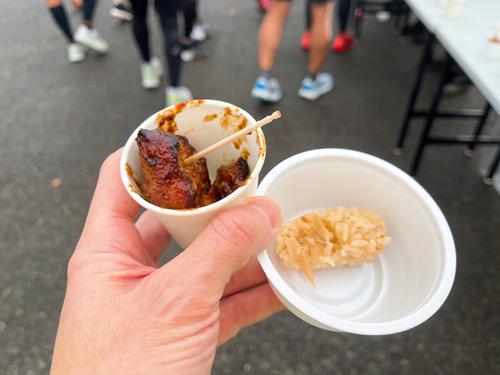 松阪牛ステーキがエイドで食べられる!ということで前から出てみたかった大会。松阪牛ステーキも美味しかったし、それ以上に地鶏が激ウマでした。みえ松阪マラソンに出たら、この2箇所は絶対楽しむべきですね。