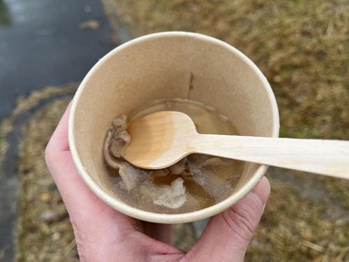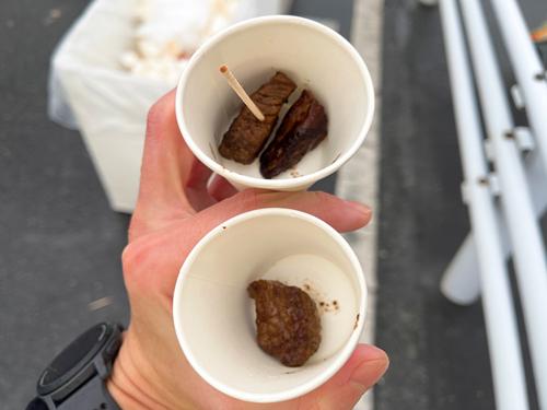 エイドの補給食なので、硬くて冷たいステーキを予想してたけど、しっかり暖かい美味しいステーキでした。うま~