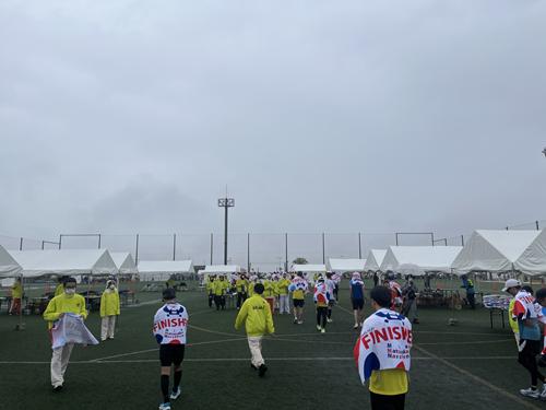 ゴール会場のスペースだけは広々としているので、晴れている日なら芝生の上でゆっくり着替えでもよさそうですが、雨の日だと着替えに困りますね。