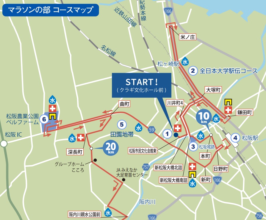 | スタート会場 | クラギ文化ホール(松阪市民文化会館) 〒515-0818 三重県松阪市川井町690 |