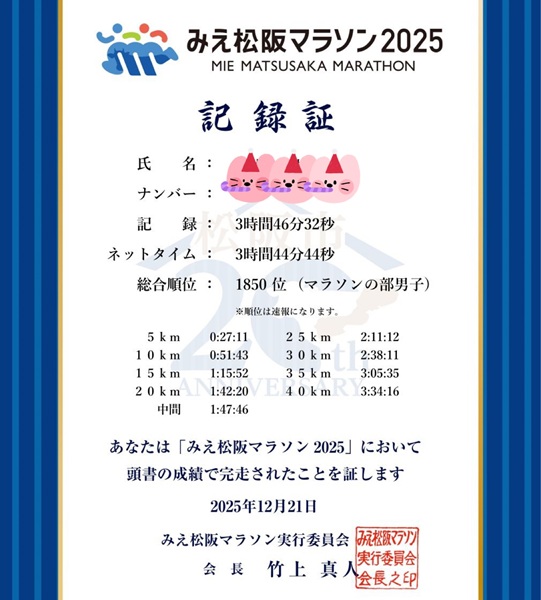 ここまで、みえ松阪マラソン2025の完走記をまとめました。