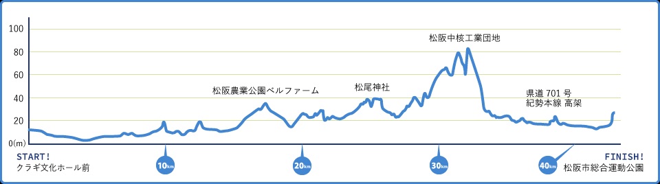 前半は、松坂駅や市街地周辺を中心とした平坦コースです。