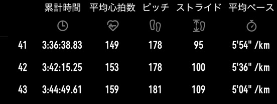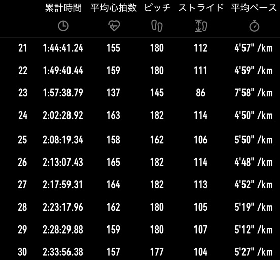 「途中でトイレ休憩やエイド休憩が入っていたのに、疲れ方がぐんまマラソンよりひどいなー。雨も結構降ってるし、想像以上に消耗してるのかな?」